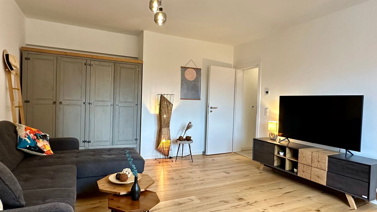 Möbliertes Businessapartment mit 2 Zimmern und Balkon in zentraler Lage in Stuttgart-Mitte. Die Wohnung befindet sich in der 2. Etage eines sehr gepflegten Mehrfamilienhauses und wurde 2024 komplett saniert. Im Wohnzimmer stehen ein Schlafsofa, ein Smart-TV und ein Essbereich für zwei Personen zur Verfügung. Darüber hinaus gibt es einen höhenverstellbaren Schreibtisch sowie einen geräumigen Kleiderschrank. Die moderne Küchenzeile verfügt über einen Geschirrspüler, einen Backofen, eine Kaffeemas...