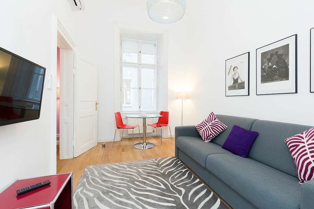 Erleben Sie den Puls der Stadt in unserer Vienna Prestige Quarz Suite, direkt an einer der schönsten, berühmtesten und zentralsten Straßen Wiens gelegen – der Fußgängerpromenade Graben. Mit dieser zentralen und unschlagbaren Lage befinden Sie sich mitten im Leben und der Geschichte des wunderbaren Wiens. Das stilvolle, heimelige Boutique-Apartment bietet mit einem Doppelbett und einem Doppelausziehsofa Platz für bis zu 4 Gäste. Das Designerbadezimmer verfügt über eine Dusche, die separate Toilet...