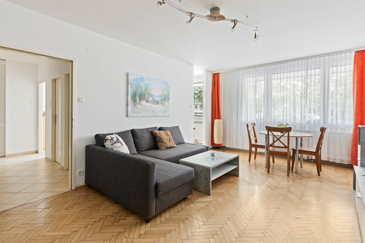 Hochfunktional und vollmöbliert ist unser Design Ein-Schlafzimmer Apartment die perfekte Wahl für Familien, Paare und Geschäftsreisende, die aus beruflichen Gründen mehrere Wochen oder Monate im Herzen Wiens verbringen möchten. Farbenfrohe Raumgestaltung, von Holzmöbeln geprägte Ausstattung und Parkettböden verleihen dem Apartment eine warme und heimelige Atmosphäre. Das separate Schlafzimmer ist mit einem Doppelbett ausgestattet. Ein begehbarer Schrank bietet ausreichend Stauraum. Im stilvoll g...