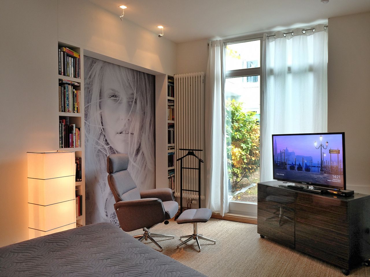 Dies ist ein modernes 2 Zimmer Studio-Apartment (siehe ausführliche Fotos und das youtube video: https://youtu.be/bVGcJzshcmI. Hier können Sie kochen, essen, wohnen und schlafen in einer ruhigen UND gleichzeitig zentral gelegenen Wohnung in Hamburg-Winterhude.Die Einrichtung ist sehr modern, stylisch und funktional gehalten. Das Wohnzimmer mit tollem Flat-TV, kostenlosem W-LAN Anschluss, einem kostenlosen Eurozone-Telefon Anschluss und seinem gemütlichen Doppelbett - schließt direkt an der komp...