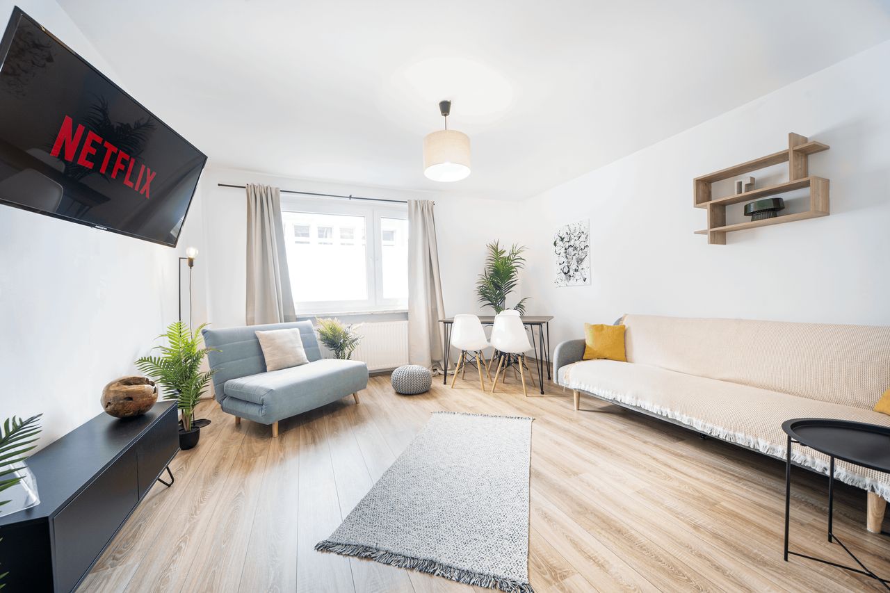 Diese stilvoll eingerichtete Wohnung bietet Ihnen eine komfortable Unterkunft mit allen Annehmlichkeiten, um sich wie zu Hause zu fühlen. Der Balkon ist der perfekte Ort, um einen ruhigen Moment in der frischen Luft zu verbringen. Die Wohnung ist auch ideal für Geschäftsreisende, die eine schnelle Verbindung im Internet und zu den wichtigsten Geschäftszielen in Essen wollen. Die Unterkunft: Herzlich willkommen in unserem modernen und stilvollen Apartment mitten in Essen. Unsere Unterkunft ist ...