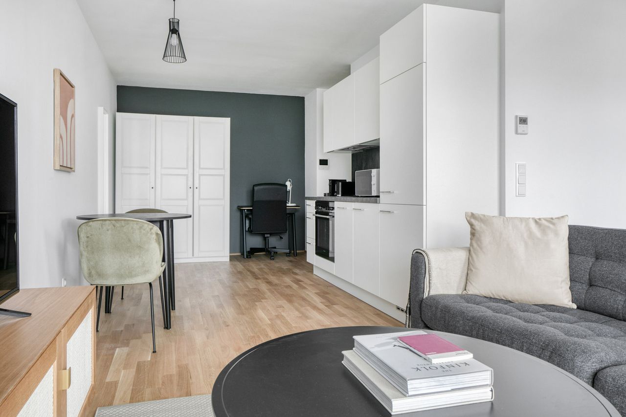 Entdecken Sie das Beste von Wien, mit diesem Studio im 2. Bezirk - Leopoldstadt mit Balkonblick über die Stadt. Es ist ganz einfach, dieses elegant eingerichtete Apartment mit seiner voll ausgestatteten Küche, dem raffinierten Wohnzimmer und unserem engagierten Support vor Ort zu beziehen und zu bewohnen. Mit Ihnen im Sinn entworfen Das durchdachte Design mit maßgeschneiderten Oberflächen, modernen Möbeln und einer voll ausgestatteten Küche sorgt dafür, dass Sie sich in diesem Apartment wie zu...