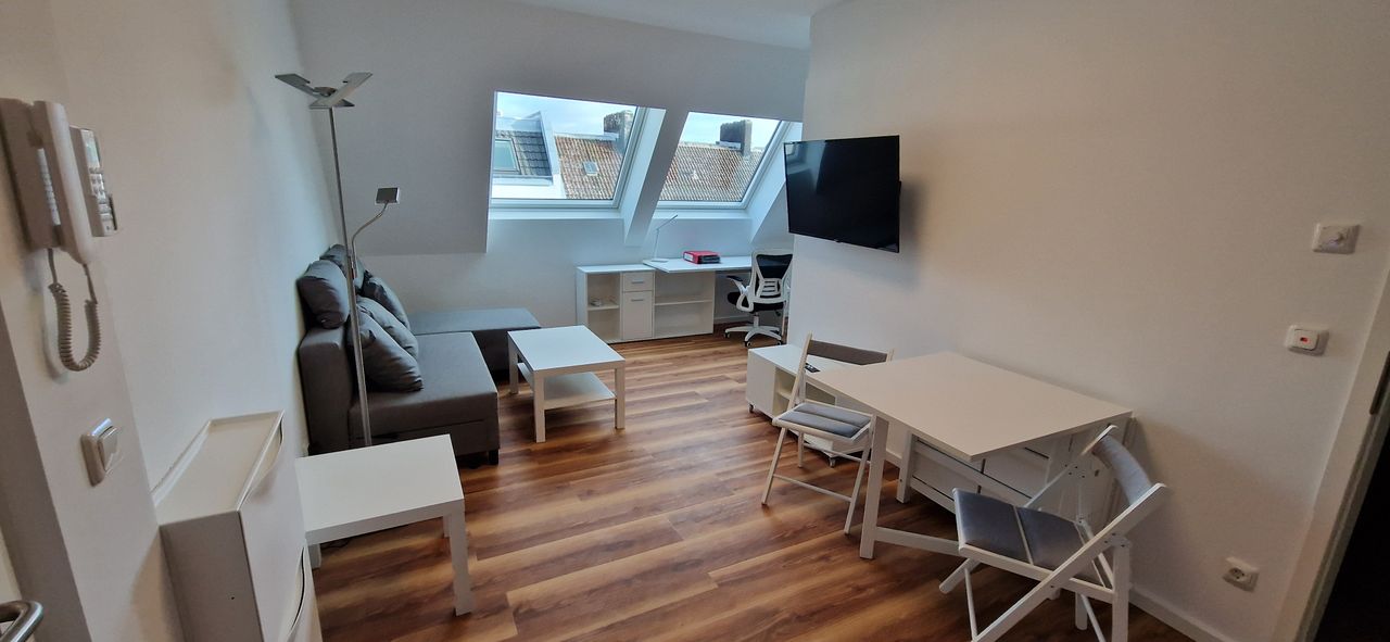 Wir bieten eine wunderschöne luxuriöse 1,5 Zimmer Dachgeschoßwohnung, diese ist hochwertig ausgestattet und verfügt über Klimaanlage und Fußbodenheizung. In der Bruttowarmmiete sind alle Betriebs- u. Heizkosten, sowie Internet WLAN/LAN und Kabel-TV enthalten. Der Mieter trägt nur seine Stromkosten. Alle Böden sind mit Fußbodenheizung und Eichenholz-Vinyl ausgelegt. Die Bäder sind vollständig gefliest und mit begehbaren Regendusche ausgestattet. Alle Wohnungen sind vollausgestattet mit Duschba...