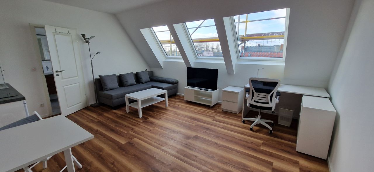 Wir bieten eine wunderschöne luxuriöse 1,5 Zimmer Dachgeschoßwohnung, diese ist hochwertig ausgestattet und verfügt über Klimaanlage und Fußbodenheizung. In der Bruttowarmmiete sind alle Betriebs- u. Heizkosten, sowie Internet WLAN/LAN und Kabel-TV enthalten. Der Mieter trägt nur seine Stromkosten. Alle Böden sind mit Fußbodenheizung und Eichenholz-Vinyl ausgelegt. Die Bäder sind vollständig gefliest und mit begehbaren Regendusche ausgestattet. Alle Wohnungen sind vollausgestattet mit Duschba...