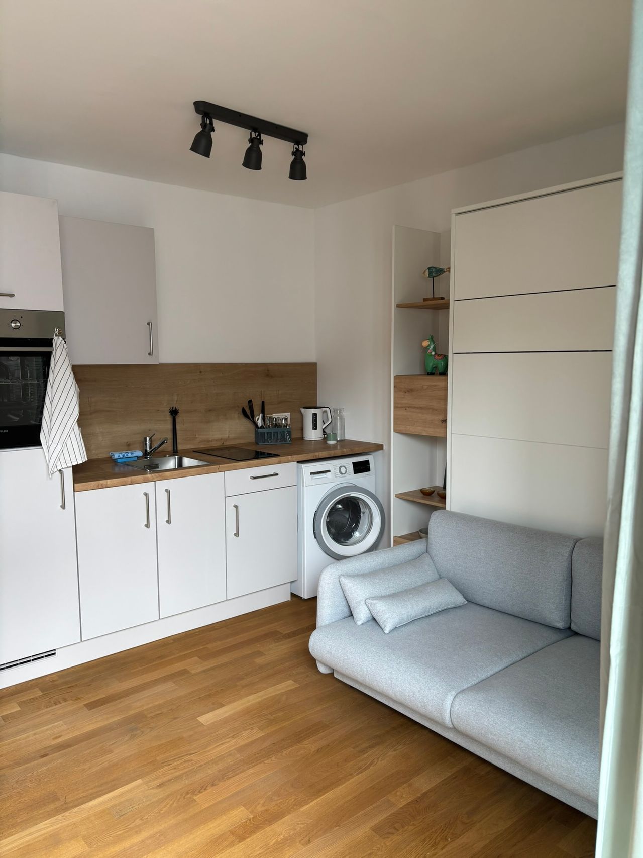 Eichenparkett, Fußbodenheizung, großes Badezimmer, neue Küche inkl. Waschmaschine, Kellerabteil., 55" LED TV wird noch über dem Esstisch montiert und ist im Mietpreis inklusive. Hochwertiges und platzsparendes Schrankbett mit LED Leuchten (wird noch montiert).