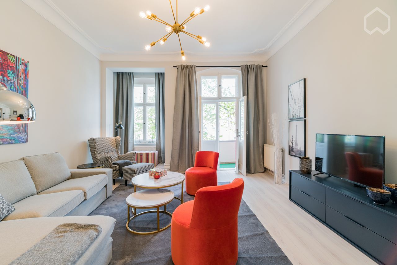 Hierbei handelt es sich um die Vermietung einer stylischen 3-Zimmer Wohnung im Berliner Bezirk "Spandau". Das Apartment hat eine Wohnfläche von insgesamt 96 Quadratmetern und teilt sich auf in zwei Schlafzimmer mit jeweils einem großen Doppelbett, einem gemütlichen Wohnbereich, einer separaten Küche mit Essbereich, dem Badezimmer und zwei Balkonen. In einem der beiden Schlafzimmer finden Sie einen Schreibtisch, sodass das Arbeiten aus dem Home-Office hier ideal möglich ist. Vom zweiten Schlafz...