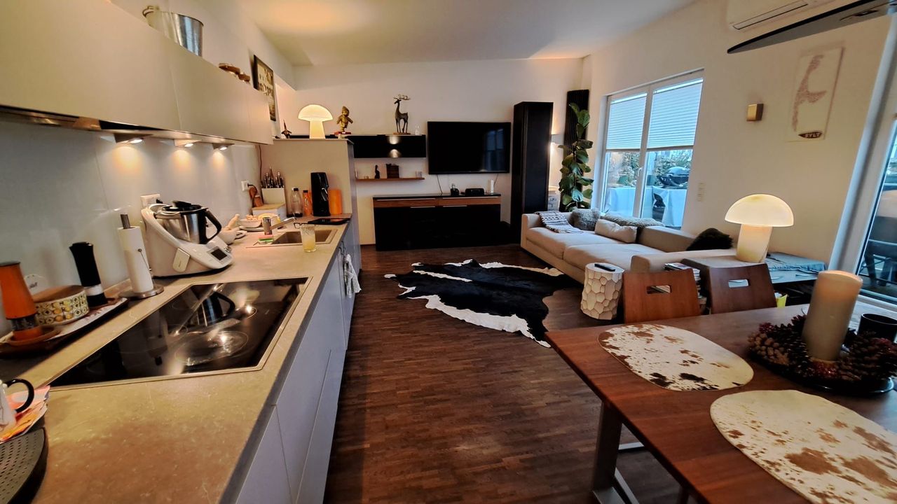 Diese modernisierte Wohnung in der vierten Etage überzeugt mit zwei hellen Zimmern, einem Schlafzimmer mit En-Suite-Bad und einem sonnigen Balkon. Die bereits vorhandene Einbauküche sowie ein eigener Kellerraum bieten Komfort und Stauraum. Die Lage ist ideal: Restaurants, Supermärkte, Ärzte, Cafés und Grünanlagen sind fußläufig erreichbar. Dank der guten ÖPNV-Anbindung (Buslinie 132) sind Sie schnell in der Kölner Innenstadt. Highlights: - Balkon mit Südausrichtung - Eigener Stellplatz - En...