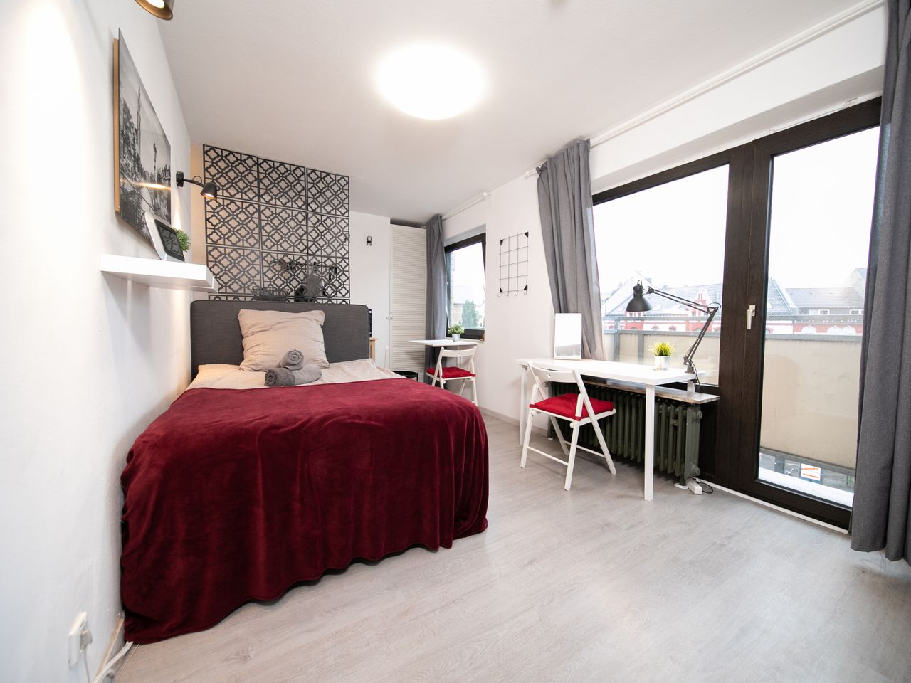 Enjoy Düsseldorf in beautiful Pempelfort with fantastic access to the city! Welcome to this studio that offers everything you need for a great stay in Düsseldorf: → BOXSPRING BED → Smart-TV with NETFLIX → Free coffee/tea → Kitchenette and BALCONY → Walking distance to the old town and Hofgarten → Quick to the trade fair and airport by bus/train. A small, practical, and clean accommodation. Communication with the host was straightforward and reliable. The location is great! The 31m² apartment wa...