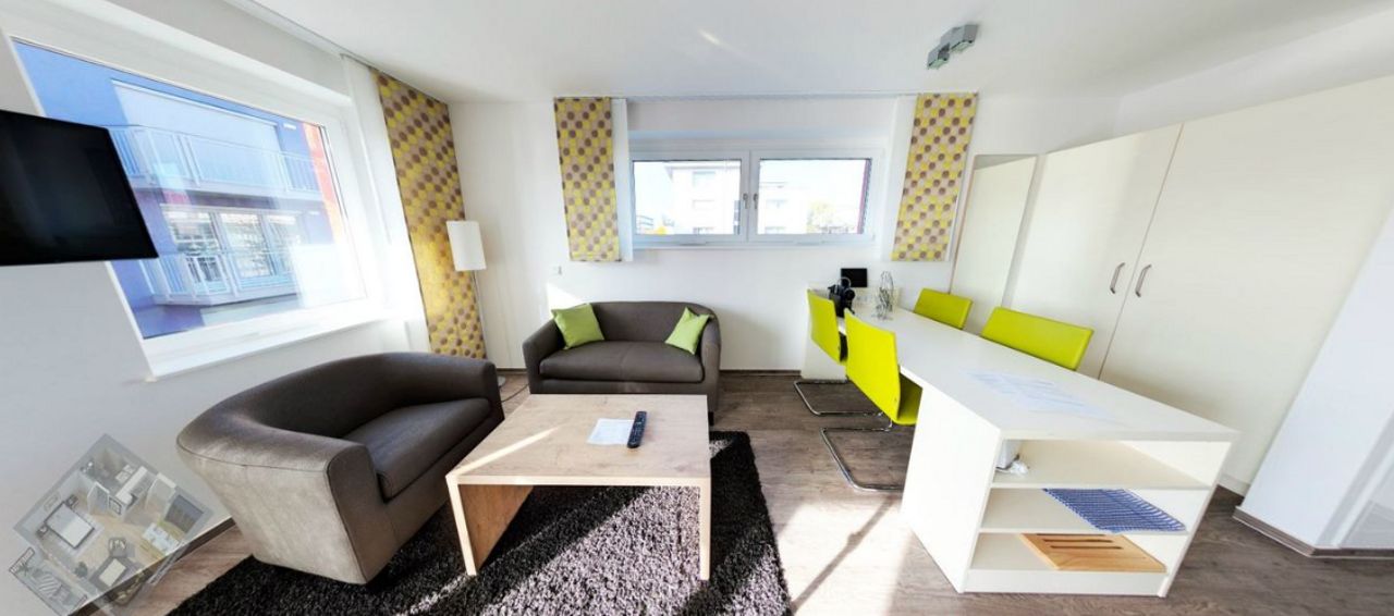 Wohnen, Erholen, Arbeiten, Lernen. Die Wohnungen sind komplett eingerichtet. Hochwertige Materialien, lichtdurchflutete Räume und das erstklassige Design schaffen ein Umfeld für Menschen, die einen hohen Anspruch an Wohnkomfort haben. Die intelligente Innenarchitektur erschafft eine großzügige Raumatmosphäre. Bei der Einrichtung der wird auf Markenqualität gesetzt – ganz gleich, ob schwenkbarer LCD-Fernseher mit großem Bildschirm oder offener Küchenbereich mit Herd, Mikrowelle, Spülmaschine un...