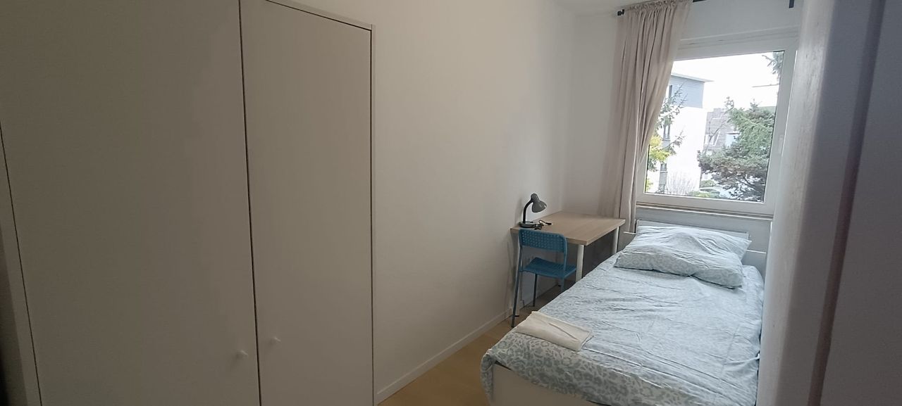 Diese geräumige WG bietet einen komfortablen und gut ausgestatteten Wohnraum in Bochum. Ausstattung der Wohnung: Voll möblierte Zimmer: Jedes Zimmer verfügt über ein Bett, einen Schreibtisch, einen Stuhl und einen Kleiderschrank. Gemeinschaftsräume: Kompakte Küche, ausgestattet mit Wasserkocher, Kühlschrank, Mikrowelle, Geschirr und Besteck. Badezimmer mit WC, gemeinsam mit 4 Mitbewohnern genutzt. Zusätzliche Ausstattung: Waschmaschine und WLAN sind vorhanden. Lage: Die Wohnung befindet sich ...
