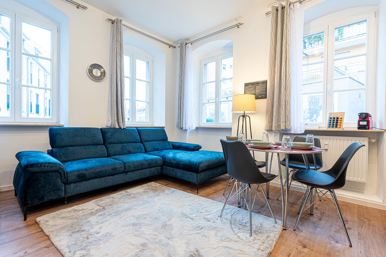 Diese schöne kleine Altbauwohnung im denkmalgeschützten Gebäude wurde saniert, renoviert und modernisiert. Sie erwartet dich mit einer tollen Ausstattung und bietet Platz für bis zu 4 Personen. Nach dem du dein Auto im nahe gelegenen Parkhaus geparkt hast, kannst du die Wohnung betreten. Dich erwartet eine Wohnung mit 1 Schlafzimmern, 1 Bad, Wohnzimmer und Küche. Du kannst bei uns deinen Tag mit leckerem NESPRESSO-Kaffee oder einer Tasse Tee beginnen und all die wunderbaren Annehmlichkeiten ge...