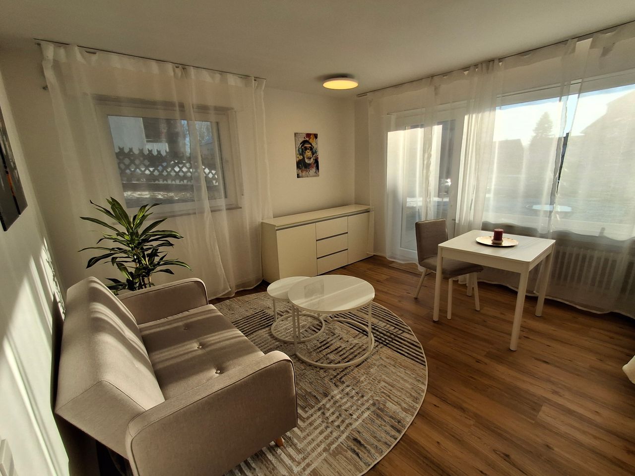 Erstbezug nach Sanierung: helle, möblierte Gartenwohnung mit Terrasse, separatem Arbeitsraum und Stellplatz. Ruhige Lage nahe Natur, all-inclusive – ideal für Wohnen auf Zeit in Stuttgart.
