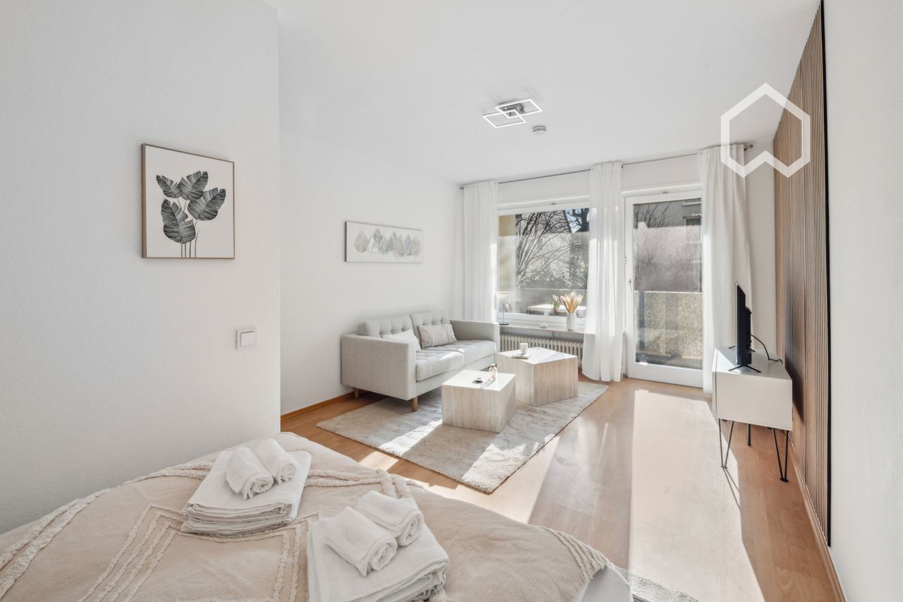Highlights: • 44 m² Wohnfläche mit durchdachter Raumaufteilung • Wohn-/Schlafbereich mit Boxspringbett & Sofa • Zugang zum eigenen Balkon mit Blick ins Grüne • Voll ausgestattete Küche mit Herd, Kühlschrank, Mikrowelle, Wasserkocher & Kaffeemaschine • Esstisch für 2 Personen • Modernes Tageslichtbad mit Dusche • High-Speed WLAN (250 Mbit/s) inklusive • Bettwäsche, Handtücher & Erstausstattung inklusive • Supermärkte, Apotheke & Bushaltestelle fußläufig erreichbar • Ruhige, grüne Wohnlage mit sc...
