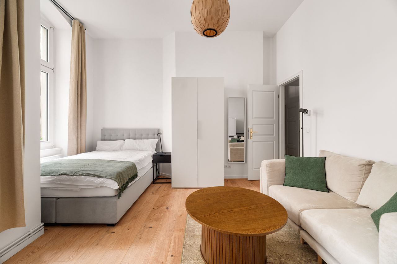 Dieses eindrucksvolle, möblierte Studio Apartment bietet modernes Design, eine voll ausgestattete Küche und einen gemütlichen Wohnbereich mit traumhafter Aussicht. Perfekt gelegen, hast du einfachen Zugang zu allem, was Berlin einzigartig und spannend macht!