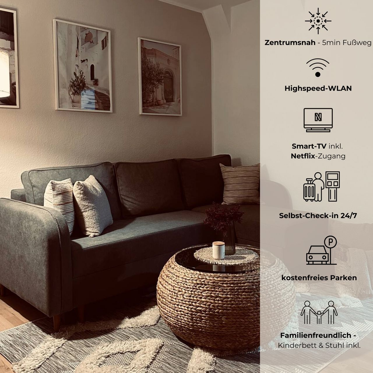 Gemütliche 2-Zimmerwohnung im Herzen der wunderschönen Landeshauptstadt sucht dich, um dir deinen Aufenthalt in Erfurt zu versüßen und dir den Luxus zu bieten, den du dir verdient hast. Tauche ein und gönn dir eine Auszeit. Hier findest du alles, was du für einen unvergesslichen Aufenthalt brauchst. Eine brandneue Einbauküche mit neuen Geräten, einer exklusiven Kaffeemaschine, Waschmaschine und Smart-TV mit Netflix und Amazon Prime Zugang.