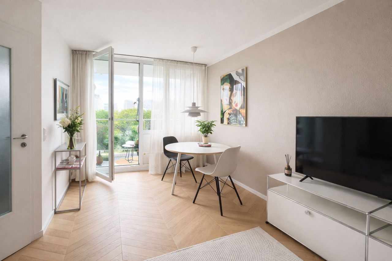 Dieses moderne 2 Zimmer-Apartment (ca. 42 m²) vereint Luxus, Komfort und Funktionalität und eignet sich perfekt als Business-Apartment für Berufspendler, Firmenkunden oder Projektmitarbeiter. Das Apartment beeindruckt mit hochwertiger Ausstattung, durchdachtem Design und einem Süd-Balkon mit Blick ins Grüne, ideal zum Entspannen nach einem langen Arbeitstag. APARTMENT & AUSSTATTUNG: • Hochwertig, fast neuwertig • Echtholz-Fischgrätparkett, Designer-Möbel (Vitra, USM Haller, Louis Poulsen), maßg...