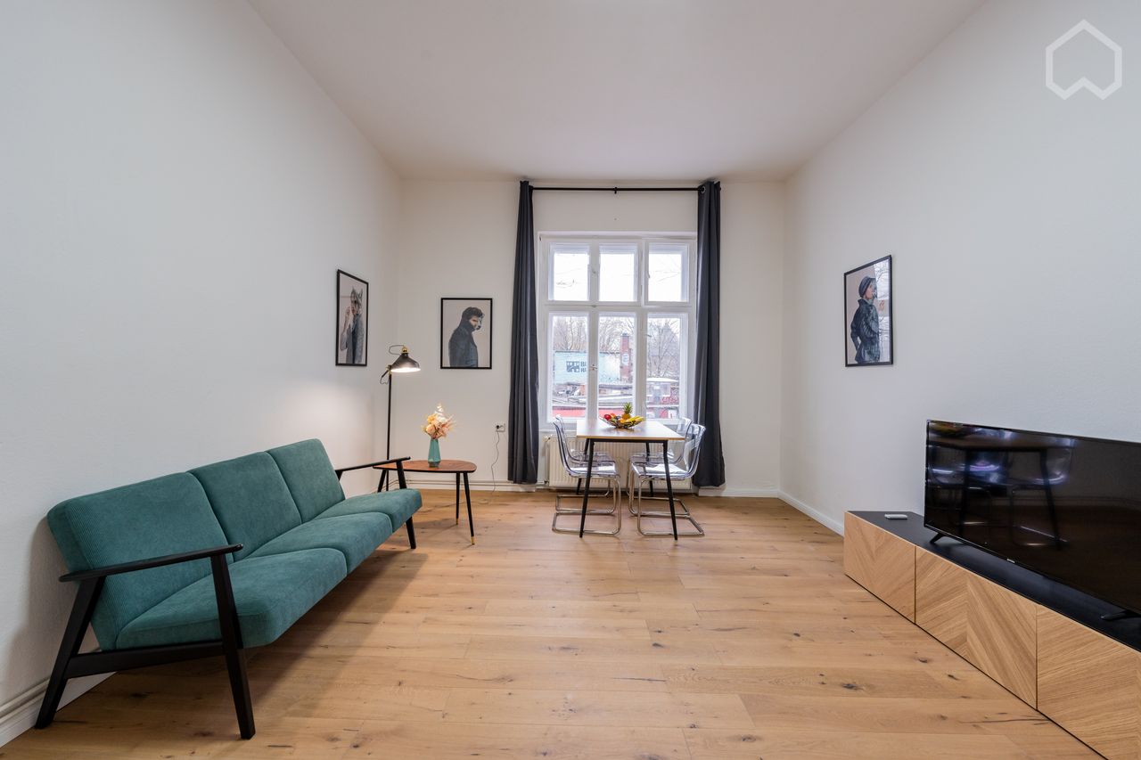 Die Wohnung befindet sich im 1.Obergeschoss eines gepflegten typischen Berliner Altbau und hat eine Fläche von ca. 80 qm. Die Wohnung teilt sich auf in ein Schlafzimmer, ein Wohnzimmer., Küche mit Speisekammer und ein Bad mit Badewanne auf. Das Wohnzimmer verwandelt sich durch das smarte Schrankbett schnell in ein zweites Schlafzimmer. Alle notwendigen Küchengeräte und Utensilen sind vorhanden. Selbstverständlich hat die Wohnung schnelles Internet. Die Wohnung ist sowohl für eine Familie, wie a...