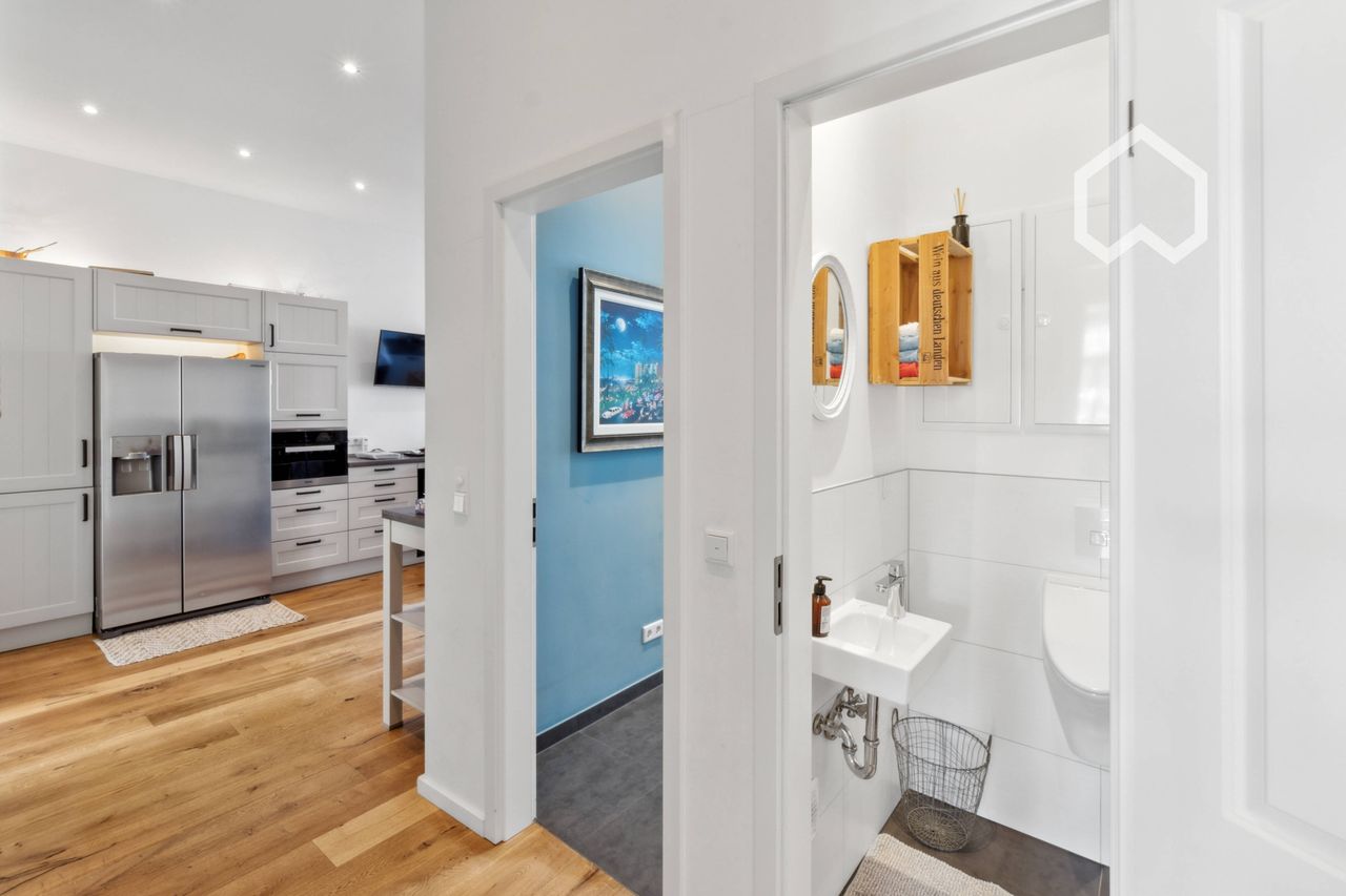 Diese gemütliche und stilvolle 105m² große Wohnung im Herzen von Pempelfort vereint historischen Charme mit modernem Komfort. Sie befindet sich in einem wunderschön erhaltenen Gebäude aus dem Jahr 1899 und besticht durch hohe Decken, eine warme und einladende Atmosphäre sowie eine durchdachte, vollständig möblierte Gestaltung. Der großzügige Wohnbereich verfügt über ein bequemes Schlafsofa, ideal für Gäste, während das geräumige Schlafzimmer einen ruhigen Rückzugsort bietet. Mit 1,5 Bädern, ein...