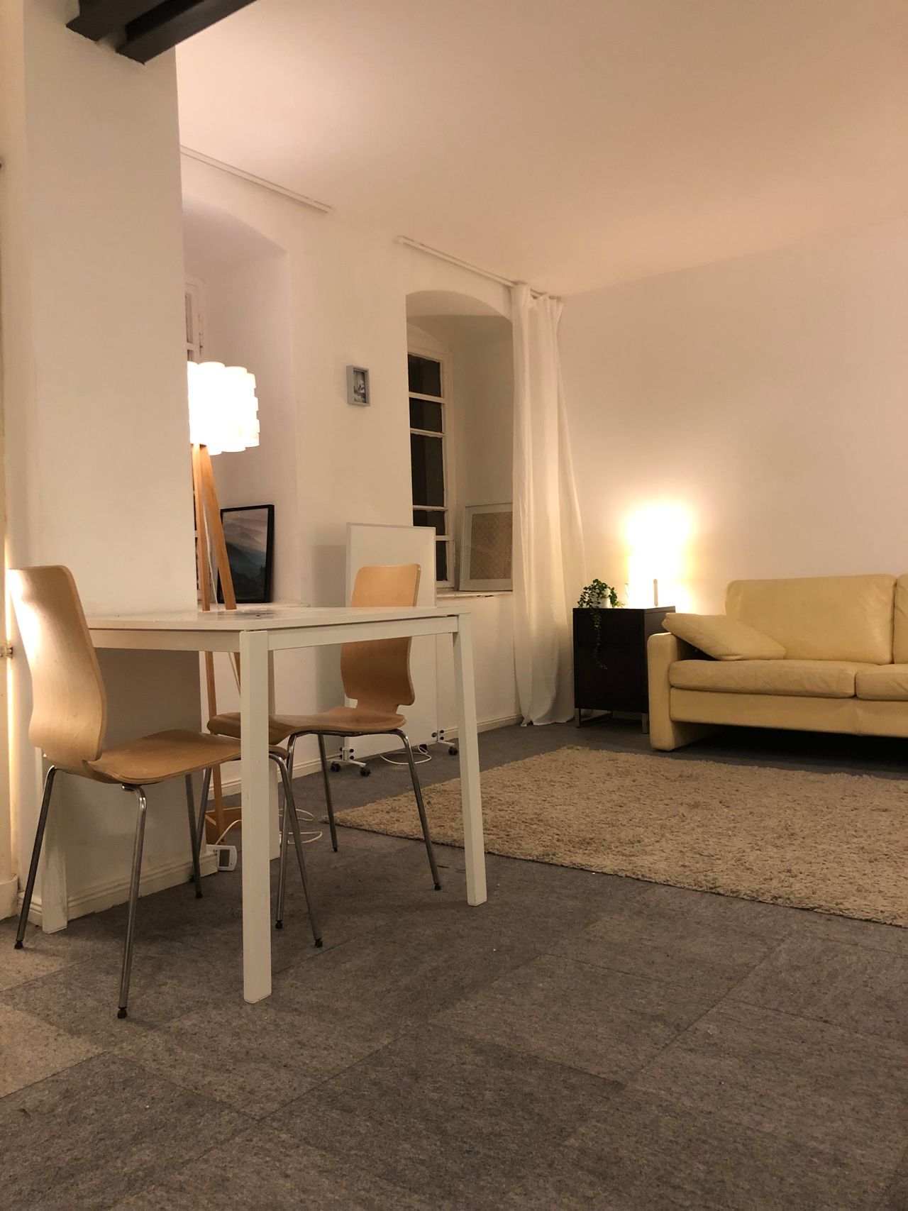 Beautiful 1-Room Apartment in Kreuzberg It is fully furnished with all necessities such as plates and duvet etc. WiFi and electricity etc is of course included. The flat is a very cool historic building truly is something special!