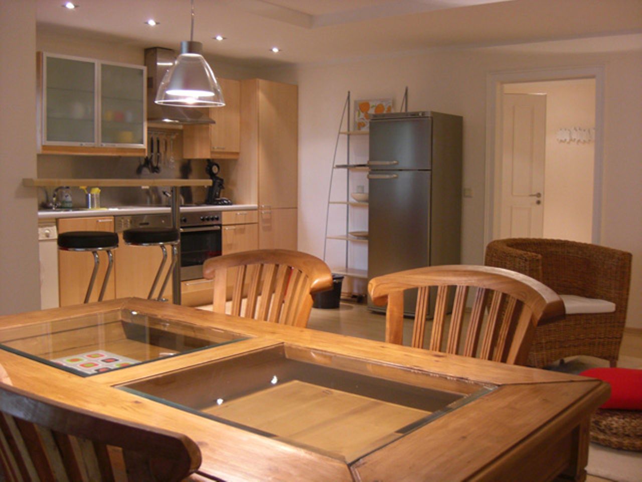 English If you need space and attach importance to a complete equipment including washing machine, which is right in this apartment: It is 70 square meters in size and offers a very nice bathroom two self-contained rooms: a quiet bedroom and a large living / dining room. The apartment is designed as a spacious and well-equipped home for two people, but if necessary, one or two extra beds can be added. There is enough space for a cot. The rooms are individually furnished: For example, in the be...