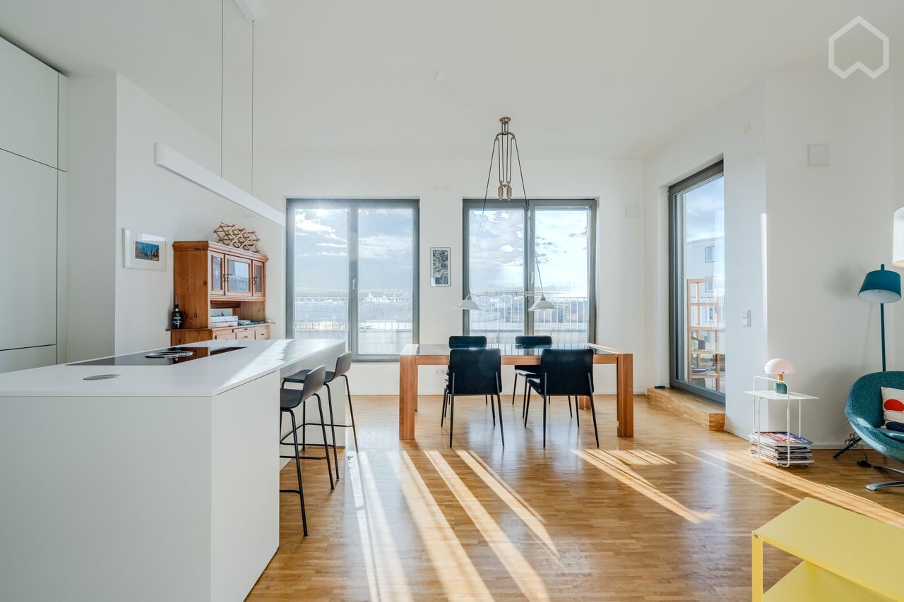 /// DIESE WOHNUNG WURDE PERSÖNLICH GEPRÜFT UND WIRD DIREKT VOM WUNDERFLATS PLUS TEAM VERWALTET /// Willkommen in Ihrem Traum-Penthouse! Diese luxuriöse, voll möblierte 95 m² große Wohnung ist eine perfekte Mischung aus Komfort und Stil und bietet alles, was Sie für einen entspannten und anspruchsvollen Lebensstil brauchen. ✨Wohnungs-Highlights ✨ Wohn-Ess-Küchenbereich Treten Sie ein in einen wunderschön gestalteten, offenen Raum mit bodentiefen Fenstern, die den Bereich mit natürlichem Lich...