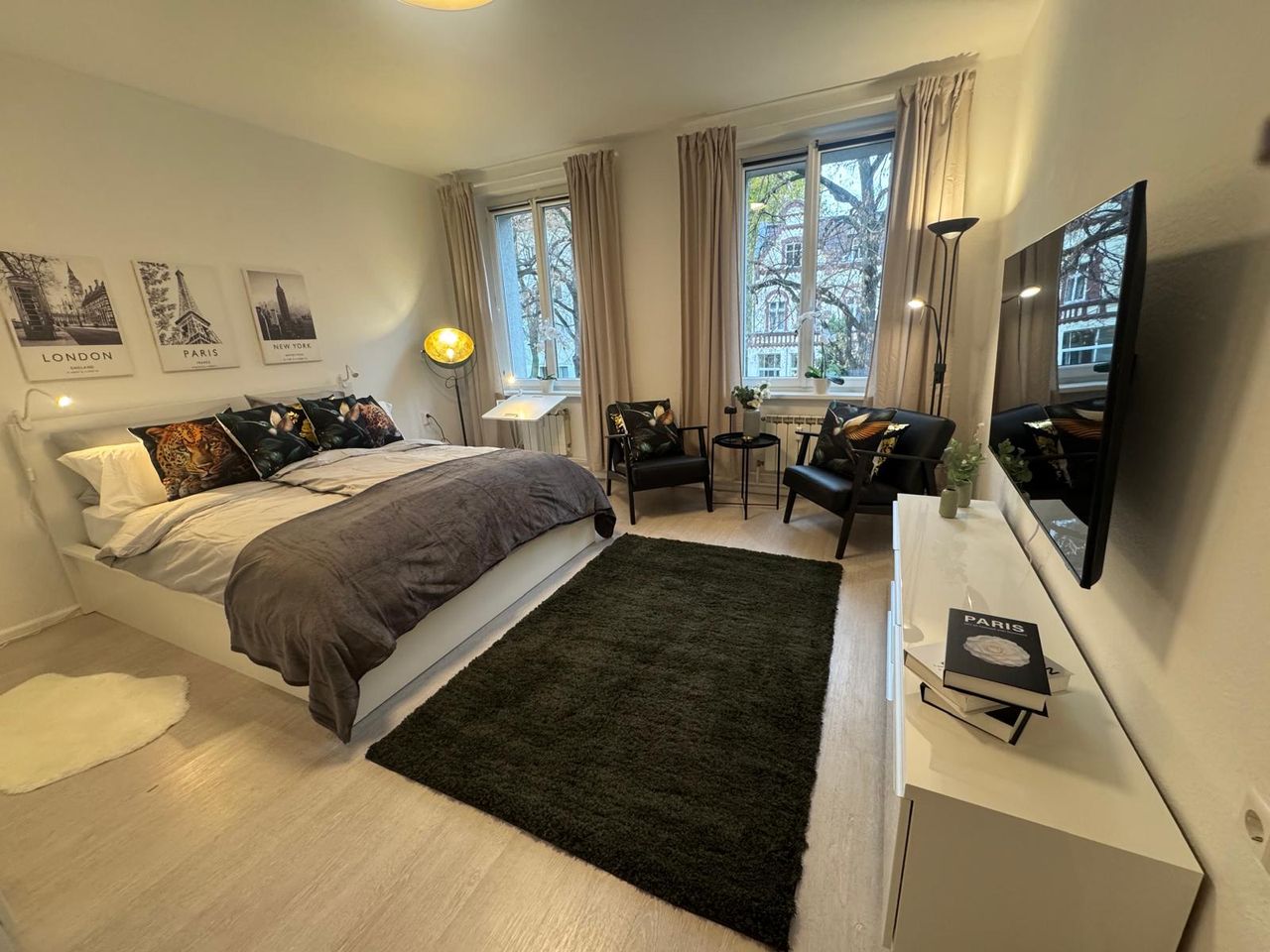 Perfekte, helle, frisch renovierte Single-Wohnung, komplett ausgestattet a. Katensprung zum WISTA-Campus b. 1 ZKB Wohnung auf 36 qm im 1.OG c. frisch renoviert in 2025 d. vollständige Ausstattung (Bett, Schrank, Schreibtisch etc.) e. neu eingerichtet Küche, Bett, Schrank, Schreibtisch, TV