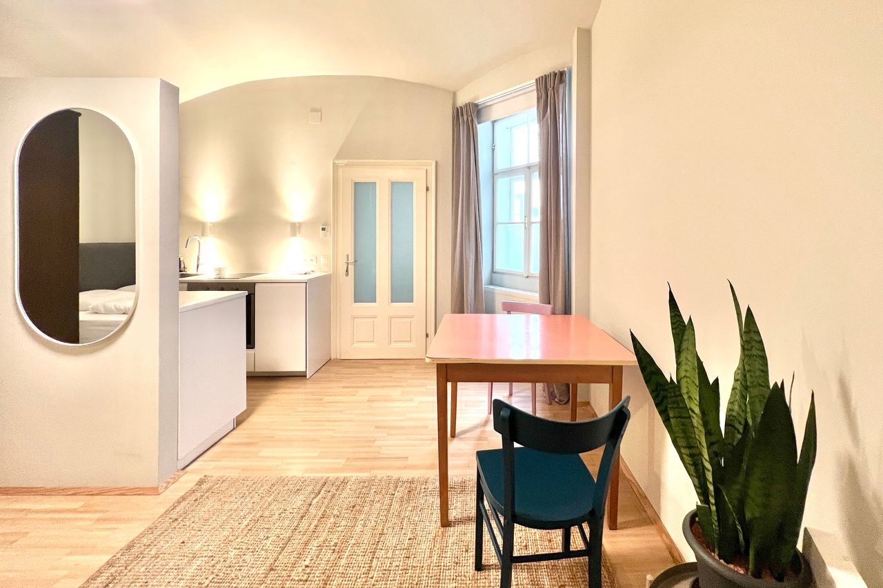 Meine 43m2 große 1-Zimmer-Wohnung in einem der schönsten Bezirke Wiens wurde kürzlich renoviert und neu eingerichtet. Sie erreichen den Ring / Burgtheater in ca. 5 Minuten zu Fuß. Der Supermarkt Billa und eine Apotheke sind nur 1 Gehminute entfernt. Die Küche ist nagelneu und voll ausgestattet für alle Ihre Bedürfnisse beim Kochen und Essen. Voll ausgestattete Küche mit Herd, Backofen, Geschirrspüler, geräumigem Kühl- und Gefrierschrank, Nespresso-Maschine und kompletten Gläsern, Geschirr und K...