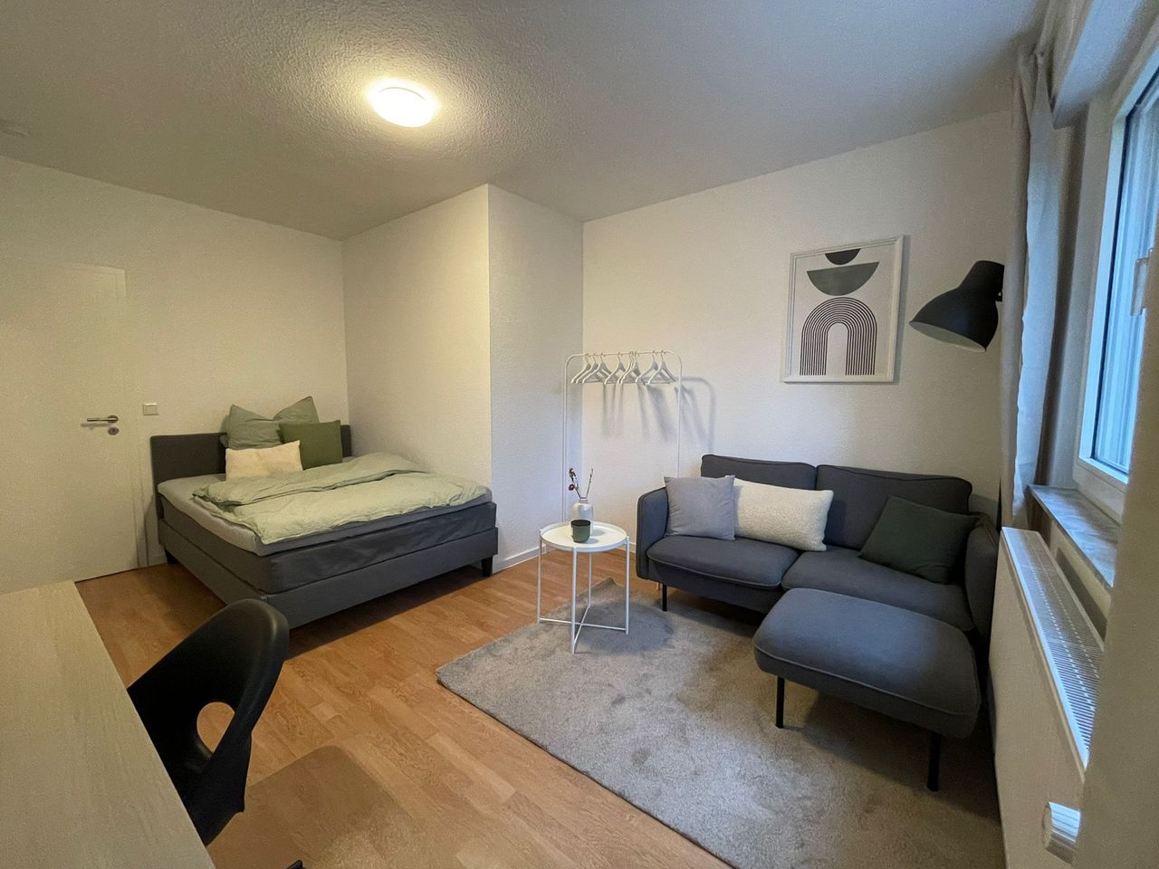 Das Zimmer ist hell und freundlich gestaltet und befindet sich in einer frisch renovierten 4er WG. Der Balkon und das große Fenster lassen viel Tageslicht in den Raum und bieten einen schönen Blick ins Grüne, wodurch eine helle und angenehme Atmosphäre entsteht. Es ist vollständig möbliert und mit einem Bett, Nachttisch, Lampe, Spiegel sowie mehreren Kissen und Bettwäsche ausgestattet. Ein Teppich und dezente Wandbilder runden das Gesamtbild ab und schaffen ein wohnliches Ambiente. Die Adresse S...