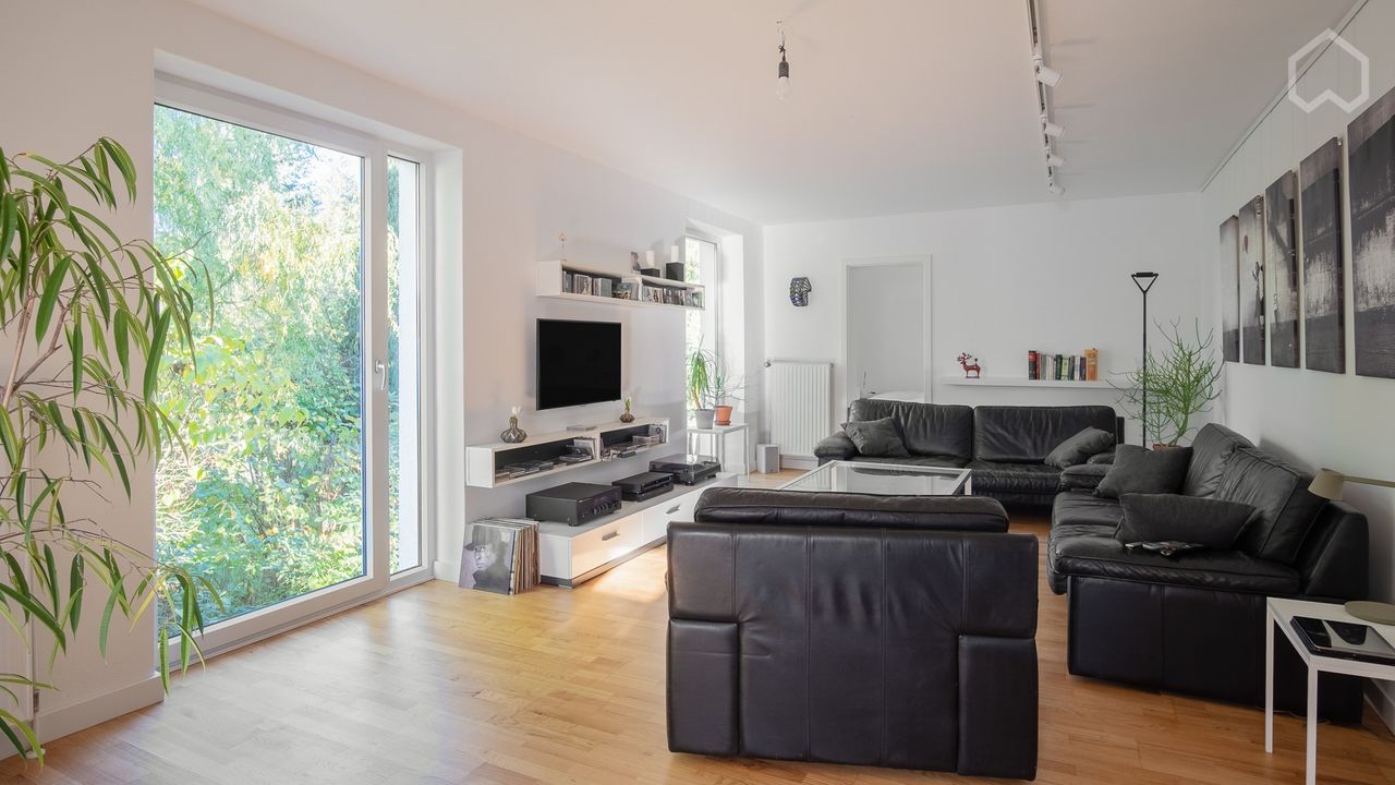 In zweiter Reihe ruhig im Grünen gelegen, erreichbar über einen Privatweg. Zur Innenstadt mit dem Auto oder Fahrrad zehn Minuten, sehr gute Einkaufsmöglichkeiten und Restaurants in unmittelbarer Nähe. Große und sonnige Terrasse nach Süden, hochwertig möbliert, neuer Herd und Backofen mit Mikrowelle, neue 8kg Waschmaschine, zwei Kühl- und Gefrierkombinationen, Küche voll ausgestattet. Wannen- und Duschbad, Gäste WC separat, in sämtlichen Räumen Eichenparkett frisch geschliffen.