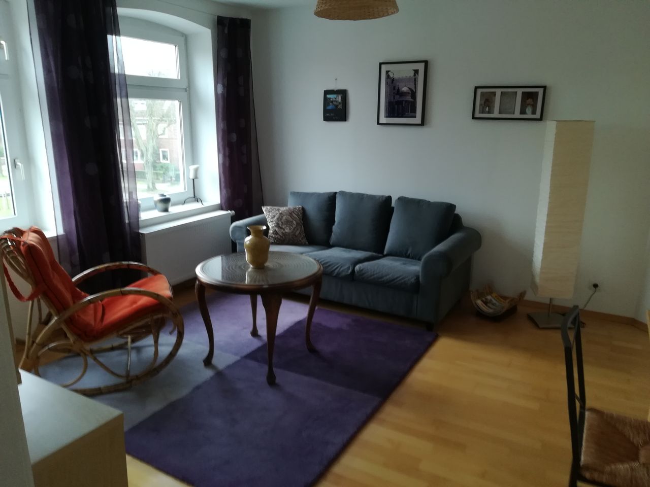 Helles, nett möbliertes Apartment mit WLAN im 2. Stock eines Altbaus von 1900 mit 2 Schlafzimmern (Dachschrägen), Wohnzimmer mit TV, Esstisch und Sofa, Küche mit allen notwendigen Utensilien und einem weiteren Esstisch für 4 Personen, 1 kleinen Arbeitszimmer mit Schreibtisch, einem großen Bad mit runder Duschkabine und Badewanne, nur 3 Gehminuten vom Bahnhof Stade und 10 Gehminuten von der Altstadt entfernt. Lidl 10 Gehminuten, Bäcker 100 m, viele kostenfreie Parkplätze gegenüber vom Haus, Garte...