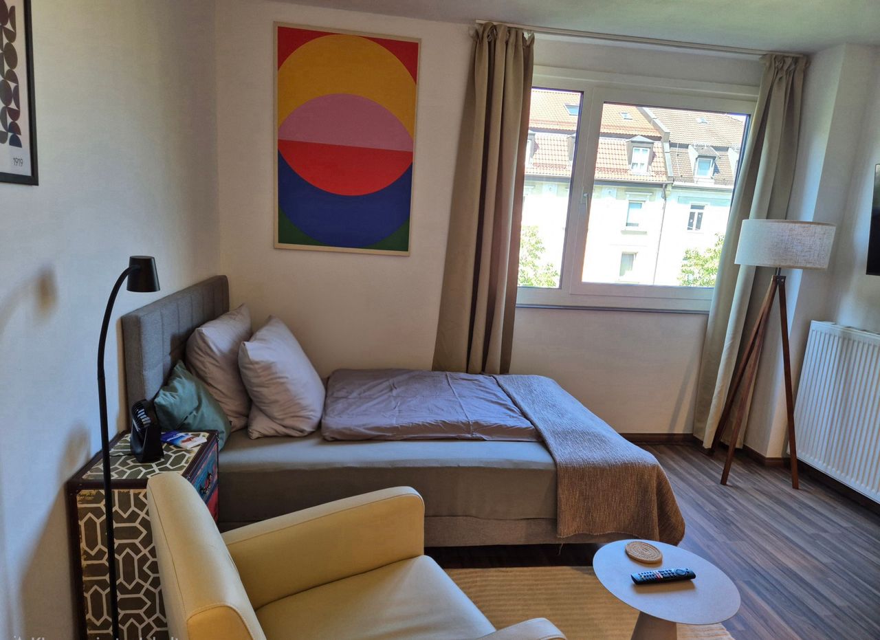 Ausrichtung zur Straße Stockwerk 3. - mit Aufzug Baujahr 1972 Zimmer Kombiniertes Wohn-/Schlafzimmer: französisches Bett 140 x 200 cm, Sessel, Schreibtisch, Essgruppe Bad mit Dusche Fußbodenbeläge Laminatboden, Fliesenboden Möblierung neuwertig, schön und hell eingerichtet Küche Apartmentküche, Kühlschrank mit Gefrierfach, Cerankochfeld, elektrischer Backofen, Dunstabzug, komplett mit Geschirr und Küchenutensilien Ausstattungsdetails Münzwaschmaschine im Haus Münztrockner im Haus Smart-TV (I...