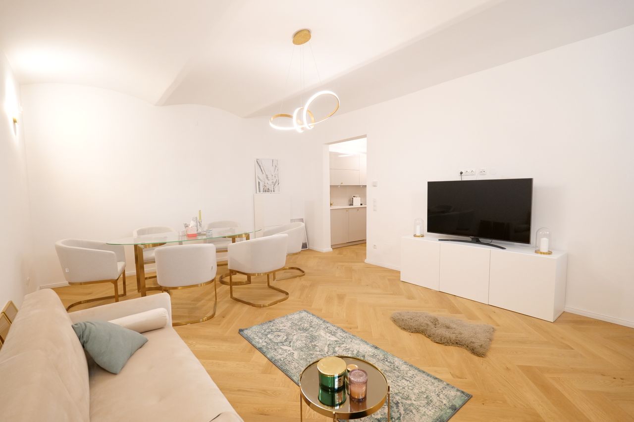 Die Wohnung hat 59m2, befindet sich im 1. Stock und wurde high-end ausgestattet, es ist alles neu. Auch eine Markenküche befindet sich zum Beispiel in der Wohnung. Die Wohnung gliedert sich wie folgt: -Vorraum -Badezimmer mit Dusche & WC - Küche - Wohn- Esszimmer - Schlafzimmer Alle Zimmer sind hofseitig gelegen, deshalb ist es wirklich sehr ruhig. Die Wohnung ist für max. 4 Personen ausgerichtet. Das Apartment befindet sich in einem der wenigen Palais in Wien, welche für Wohnzwecke genutzt w...