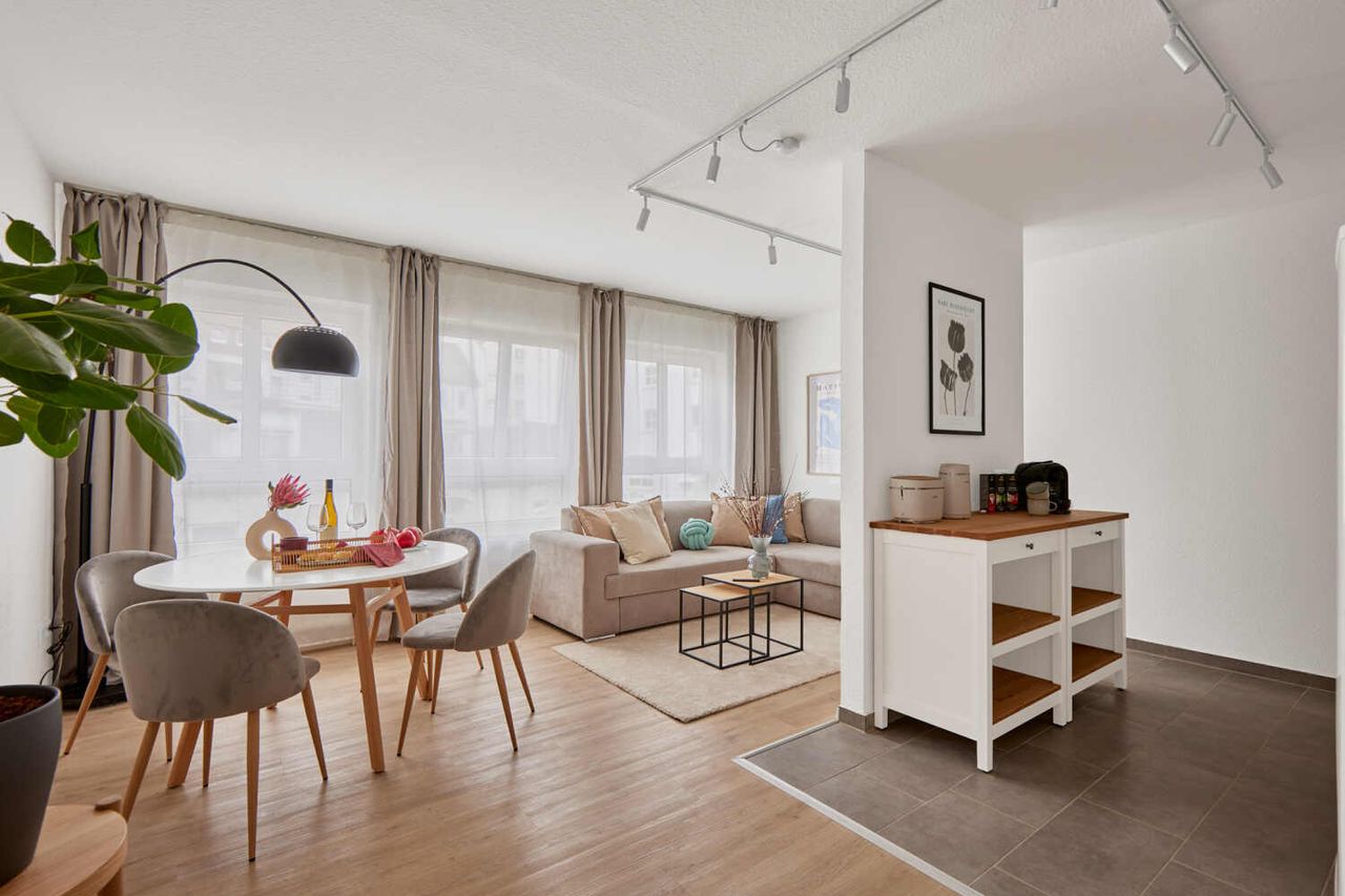 Entdecke die perfekte Unterkunft für deinen Aufenthalt in Kaiserslautern! Unsere stilvoll eingerichtete Wohnung Namens "Bella" liegt zentral und bietet eine hervorragende Lage inmitten der Stadt. Der Bahnhof, die Innenstadt und zahlreiche Einkaufsmöglichkeiten sind in unmittelbarer Nähe und leicht zu erreichen. Ob du geschäftlich unterwegs bist oder mit der ganzen Familie verreist, "Bella" ist ideal für dich! Die Wohnung verfügt über ein gemütliches Schlafzimmer, ein geräumiges Wohn- und Esszim...