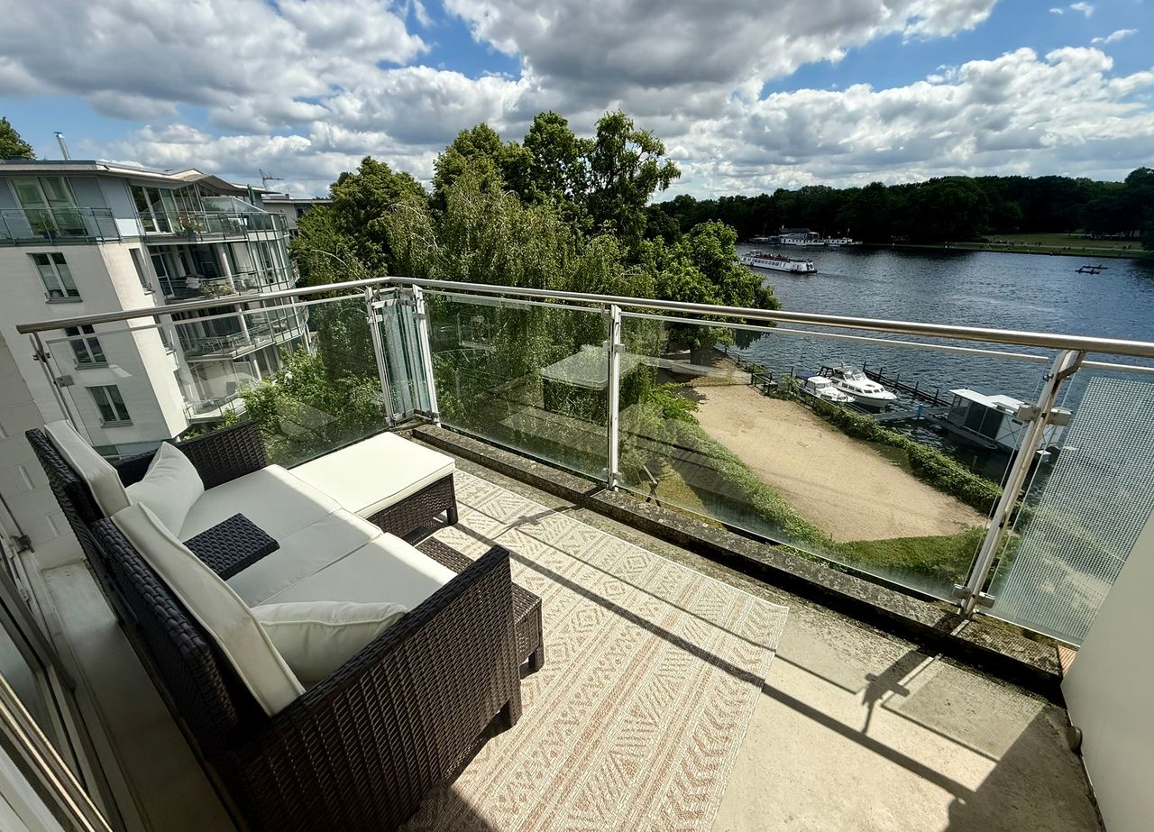 Dieses wunderschöne, frisch renovierte 35qm Studio-Apartment bietet einen fantastischen Blick auf die Spree und einen großen Balkon zum Entspannen. Es ist voll ausgestattet und lässt keine Wünsche offen: Freuen Sie sich auf eine neue Einbauküche, Echtholz Dielen, ein komfortables 1,60m breites Bett und ein Badezimmer mit hochwertigen Armaturen.