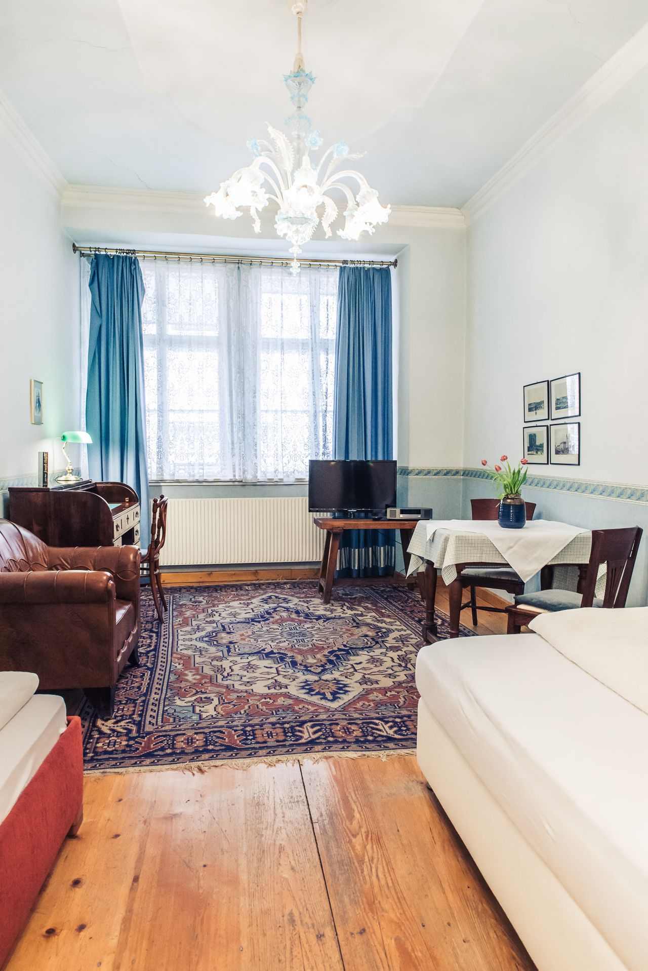 Das Apartment befindet sich im 3. Stock eines gepflegtes Barockhauses in einer ruhigen Seitengasse, im Stadtztentrum. Das Apartment verfügt über teilweise Fussbodenheizung, Stilmöblierung, Fliesen- und Holzdielenboden. Ausstattung: Wohn-/Schlafraum Bett 140x200cm, Zusatzbett 90x190cm Schreibtisch Esstisch Flatscreen Stereoanlage historischer Holzdielenboden Bad Badewanne Bidet und WC Haarföhn Küche Kühlschrank 2 Elektrokochplatten Geschirr, G...
