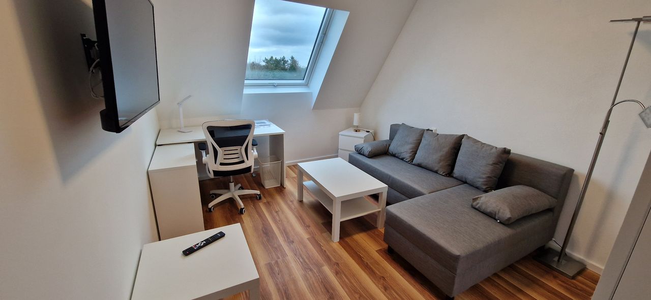 Wir bieten eine wunderschöne luxuriöse 2 Zimmer Dachgeschoßwohnung, diese ist hochwertig ausgestattet und verfügt über Klimaanlage und Fußbodenheizung. In der Bruttowarmmiete sind alle Betriebs- u. Heizkosten, sowie Internet WLAN/LAN und Kabel-TV enthalten. Der Mieter trägt nur seine Stromkosten. Alle Böden sind mit Fußbodenheizung und Eichenholz-Vinyl ausgelegt. Die Bäder sind vollständig gefliest und mit begehbaren Regendusche ausgestattet. Alle Wohnungen sind vollausgestattet mit Duschbad,...