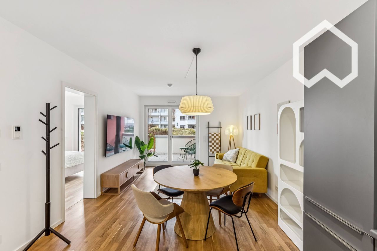 Seien Sie der/die Erste, der/die in dieser voll möblierten Neubauwohnung in einer der begehrtesten Gegenden Frankfurts am Main wohnt. Diese Erstbezugswohnung bietet ein modernes, komfortables und stilvolles Wohnambiente in einer außergewöhnlichen Lage. Die Erdgeschosswohnung verfügt über eine private Gartenterrasse mit Blick auf den ruhigen Innenhof. Der Außenbereich ist zum geschützten Gebäudeinneren hin ausgerichtet und schafft so eine ruhige Atmosphäre bei zentraler Lage. Der Garten ist von ...