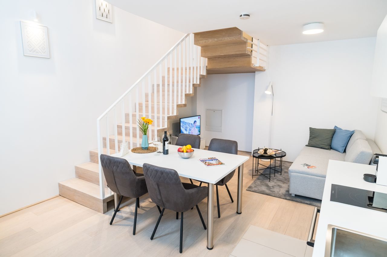 Dieses stilvoll und heimilige Apartment biete, mit einer größe von 69 Quadratmetern, einem Doppelbett auf einer schönen Gallerie, einem Doppelbett im Schlafzimmer und einer einzel Ausziehcouch im Wohnzimmer, gemütlich Platz für 5 Personen. Im Badezimmer werden Sie eine geräumige Dusche anfinden, welche dazu einlädt, nach einem langen Tag in der Stadt, zu entspannen. Das liebevoll dekorierte Wohnzimmer verfügt über eine Couch, einen Tisch, Stühle und eine kleine, aber gut ausgestattete Küche, so ...