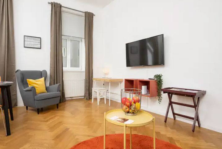 Das stilvolle, gemütliche Apartment bietet auf 50 Quadratmetern Platz für 4 Personen mit einem Doppelbett im Schlafzimmer und einem Schlafsofa. Das Badezimmer verfügt über eine Dusche. Das WC befindet sich gegenüber. Ein liebevoll dekoriertes Wohnzimmer verfügt über eine Couch, einen Tisch, Stühle und eine kleine, aber gut ausgestattete Küche, so dass Sie vor oder nach dem Erkundungstag der Stadt eine kleine Mahlzeit zubereiten können.