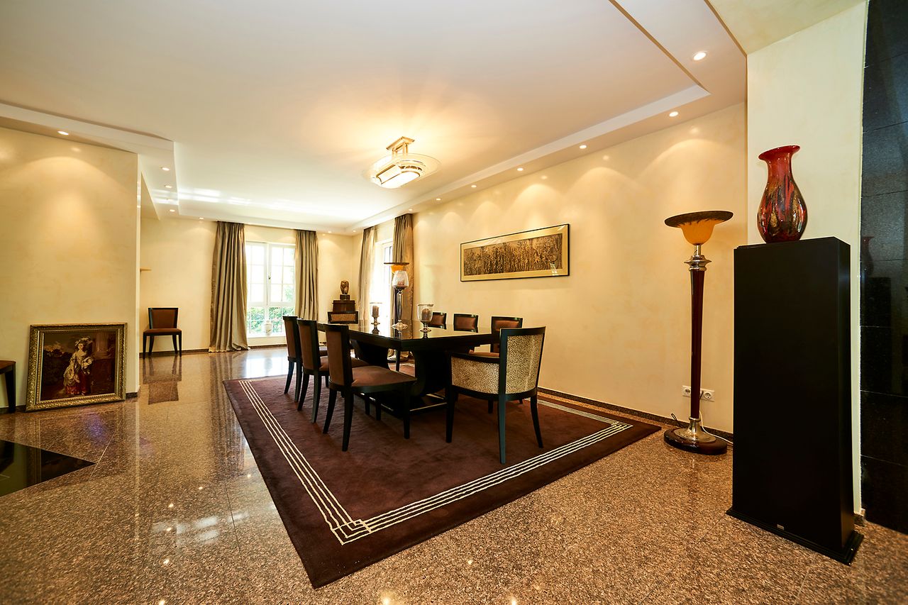 Diese Luxusvilla befindet sich im besten und grünsten Viertel Berlins mit einem großen Garten. Die Villa ist voll möbliert. Es gibt 3 Badezimmer und 1 Gästebad. Es gibt 4 Schlafzimmer. 1. Schlafzimmer ist mit einem begehbaren Kleiderschrank. Die Schlafzimmer sind mit Balkonen ausgestattet. Großes Esszimmer mit offener amerikanischer Küche, Wohnzimmer, gemütlichem Kaminzimmer, Sauna, Fitnessraum, Waschraum und separaten Räumen, die auch als Schlafzimmer oder Büro genutzt werden können. In der Vil...