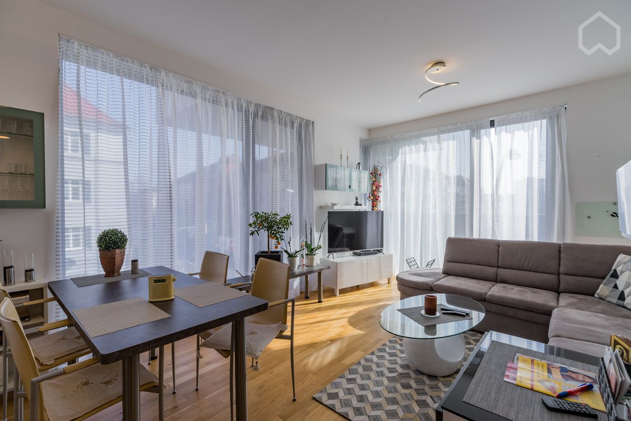 Modernes Apartment im lebendigen Berlin-Lichtenberg nahe am Zentrum. Neugebautes Eckhaus mit ausgezeichneter Anbindung zum öffentlichen Verkehr und umgeben von überzeugender Infrastruktur. Lichtdurchflutetes Ambiente durch bodentiefe Fenster, Holzböden mit Fußbodenheizung, Travertinstein-Fliesen im Bad, großzügiger Wohn-/Essbereich mit ausziehbarem Sofa für Gäste, Flachbild-TV, Computerarbeitsplatz. Ein großer Tisch bietet Arbeitsfläche oder Platz für Ihre kulinarischen Genüsse, die Sie selbst ...