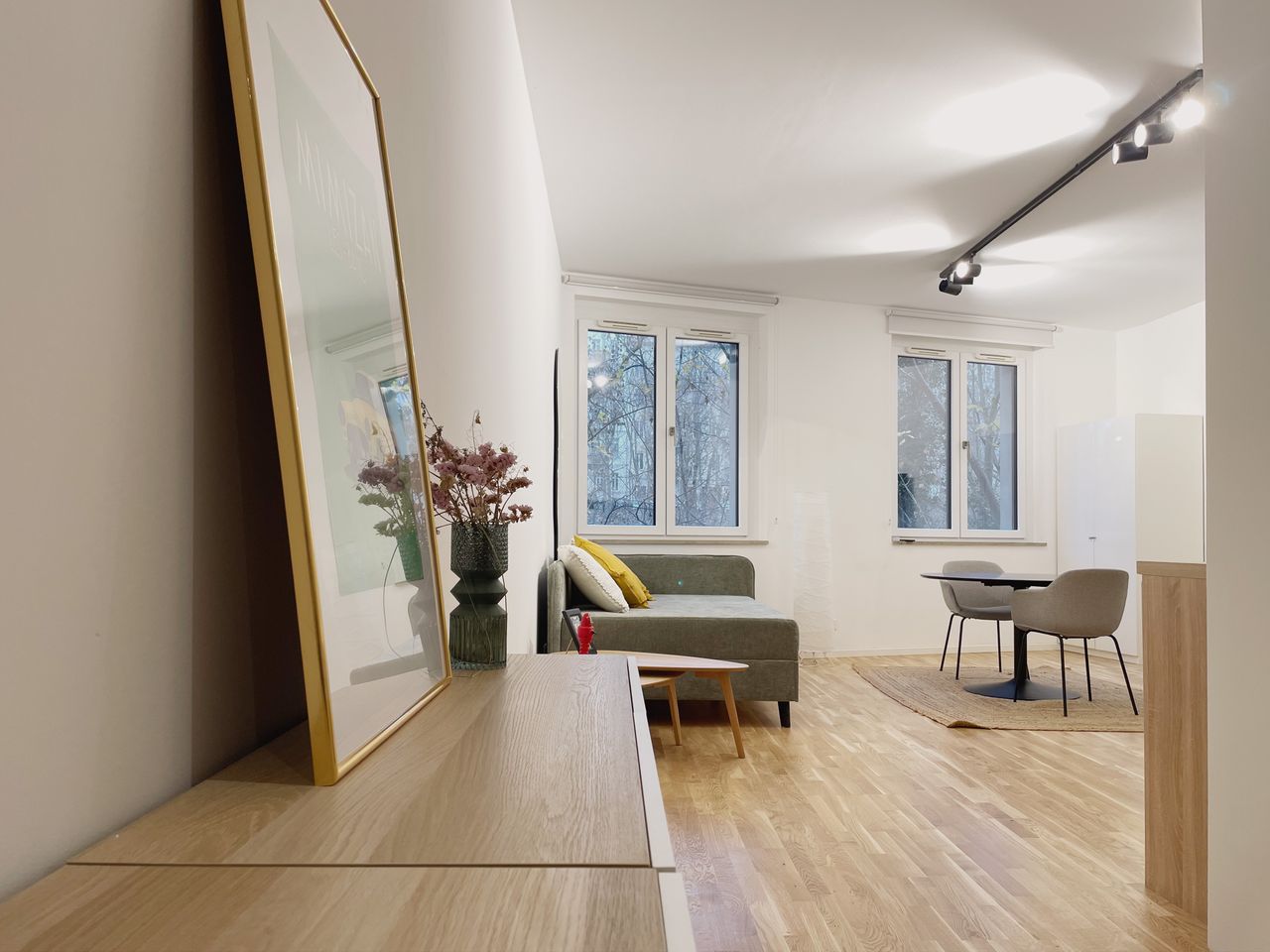 Modernes und großzügiges Studio mit 49 m², hohen Decken und einem clever halbgetrennten Grundriss, der den Wohnbereich deutlich von einer gemütlichen, erhöhten Schlafnische trennt. Zwar kein vollständig abgetrenntes Schlafzimmer, aber der eingebaute Schlafbereich wirkt privat und eigenständig und bietet das Wohngefühl einer Ein-Zimmer-Wohnung, bleibt jedoch offiziell ein Studio. Frisch renoviert und vollständig möbliert, mit moderner Küche, komfortablem Wohn- und Essbereich sowie einem großen Ba...