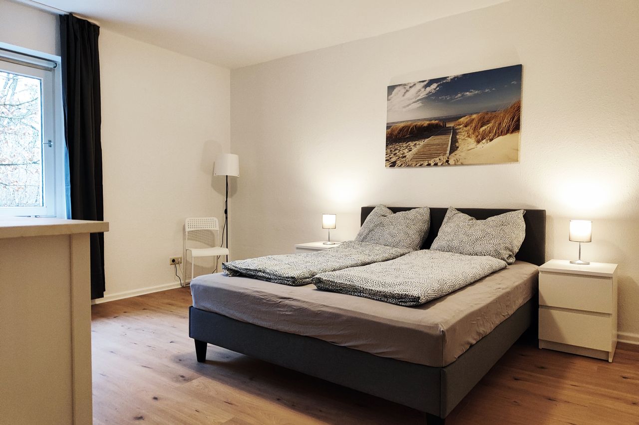 Die Wohnung verfügt über zwei Zimmer, die jeweils mit einem Doppelbett ausgestattet ist. Des Weiteren gehört zur Ausstattung eine voll ausgestattete Küche. Ein Badezimmer mit Badewanne ist ebenfalls vorhanden. In der unmittelbaren Umgebung gibt genügend freie Parklätze. Die Wohnung wird vollständig an eine Gruppe von maximal 4 Personen vermietet. Die Mindestmietdauer beträgt 6 Monate, um Ihnen eine langfristige und stabile Unterkunft zu bieten. Der Mietpreis beinhaltet sämtliche Nebenkosten wie...