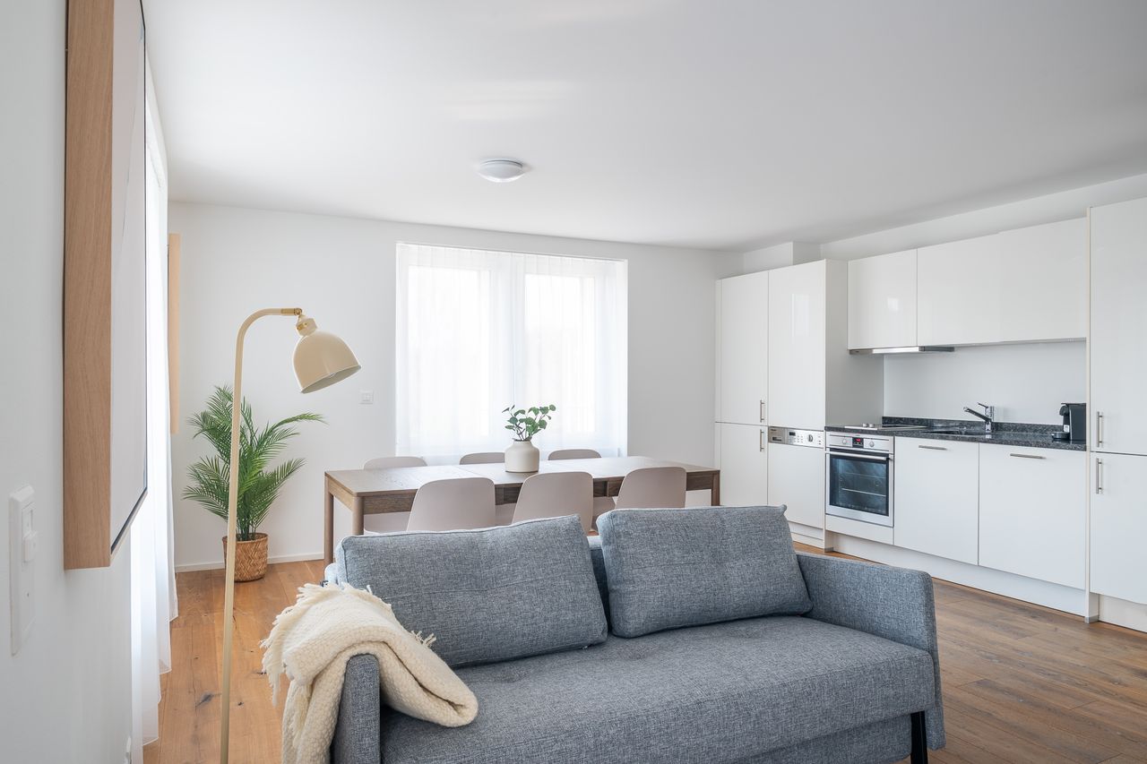 Direkt an der Limmat gelegen, präsentiert sich dieses 2.5-Zimmer-Business Apartment als ruhige Wohnlösung mit angenehmer Nähe zur Stadt. Auf rund 45 m² entsteht ein offener, klar strukturierter Grundriss, der Wohnen, Essen und Kochen fliessend miteinander verbindet. Der Wohnbereich wirkt durch die grosszügigen Fensterfronten hell und leicht. Helle Materialien, warme Holzböden und eine moderne, zurückhaltende Möblierung schaffen eine angenehme, unaufgeregte Atmosphäre. Der Essbereich ist harmon...