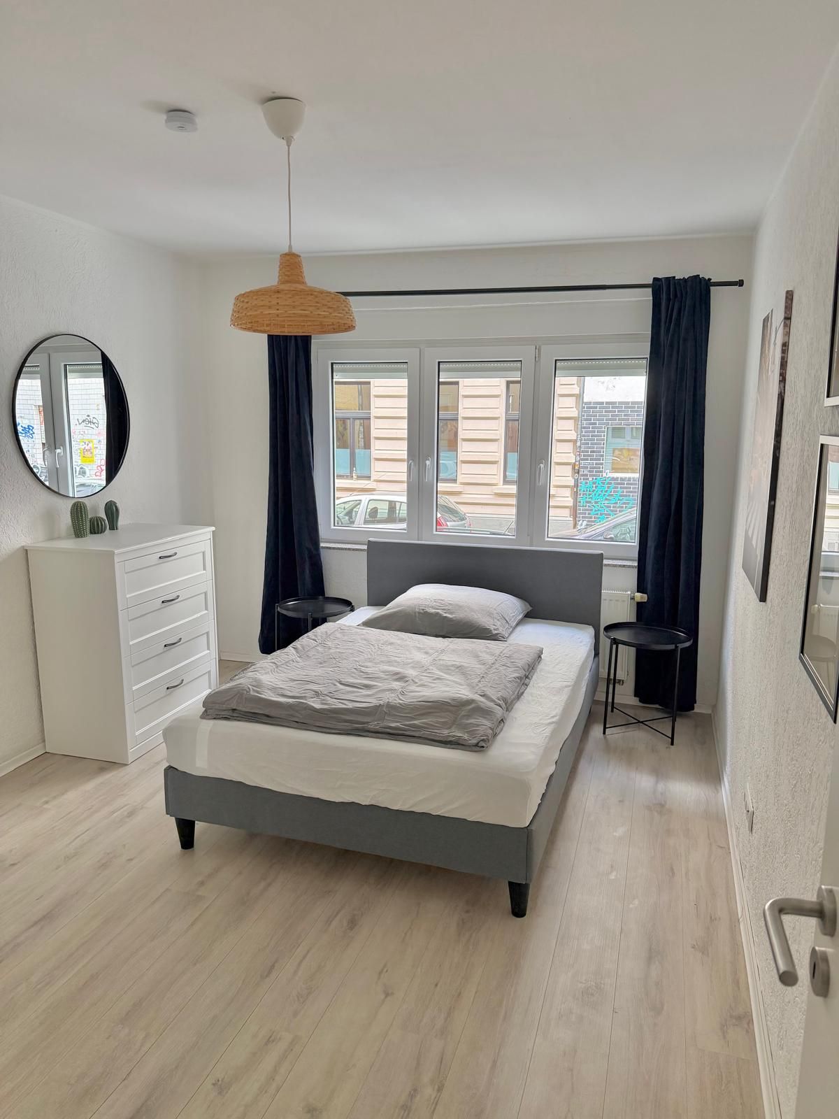 Bitte beachten Sie, dass die Reinigungsgebühr von 480 € + die Bearbeitungsgebühr von 480 € VOR dem Einzug zu entrichten sind. Es handelt sich um einen unbefristeten Mietvertrag mit einer Kündigungsfrist von einem Monat. DIE WOHNUNG: Eine helle und komfortable 3-Zimmer-Wohnung, ideal für Kurz- und Langzeitaufenthalte. Jedes Schlafzimmer ist geschmackvoll eingerichtet mit bequemen Betten, weicher Bettwäsche, Nachttischen und großen Fenstern, die viel Tageslicht hereinlassen. Verdunkelungsvorhänge...