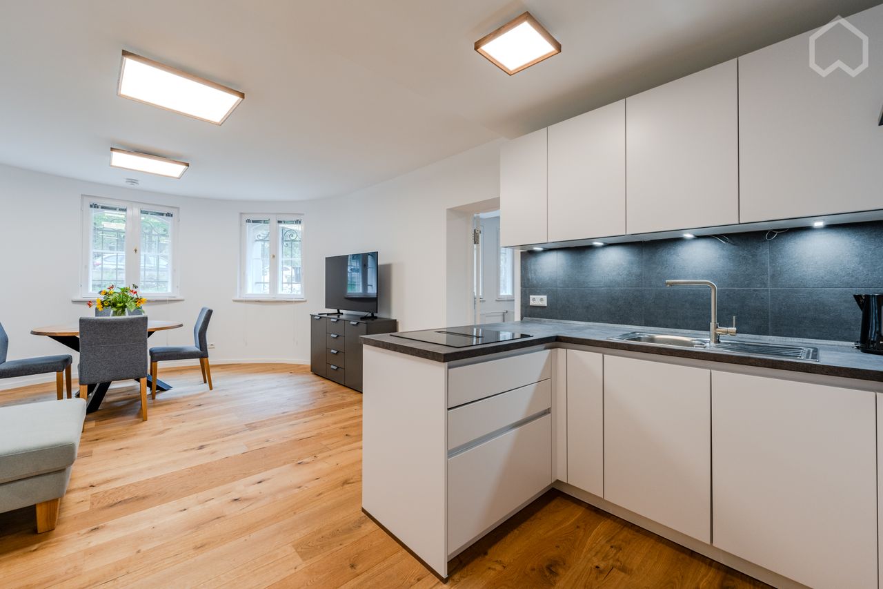 Die Miete umfaßt alle Nebenkosten einschließlich Strom, Wasser, Heizung Die Wohnung verfügt u.a. über - High Speed Internet und WLan - Flat TV - voll ausgestattete Einbauküche - Essstisch - Sofa - Schreibtisch - modernes Bad mit Dusche - Fußbodenheizung
