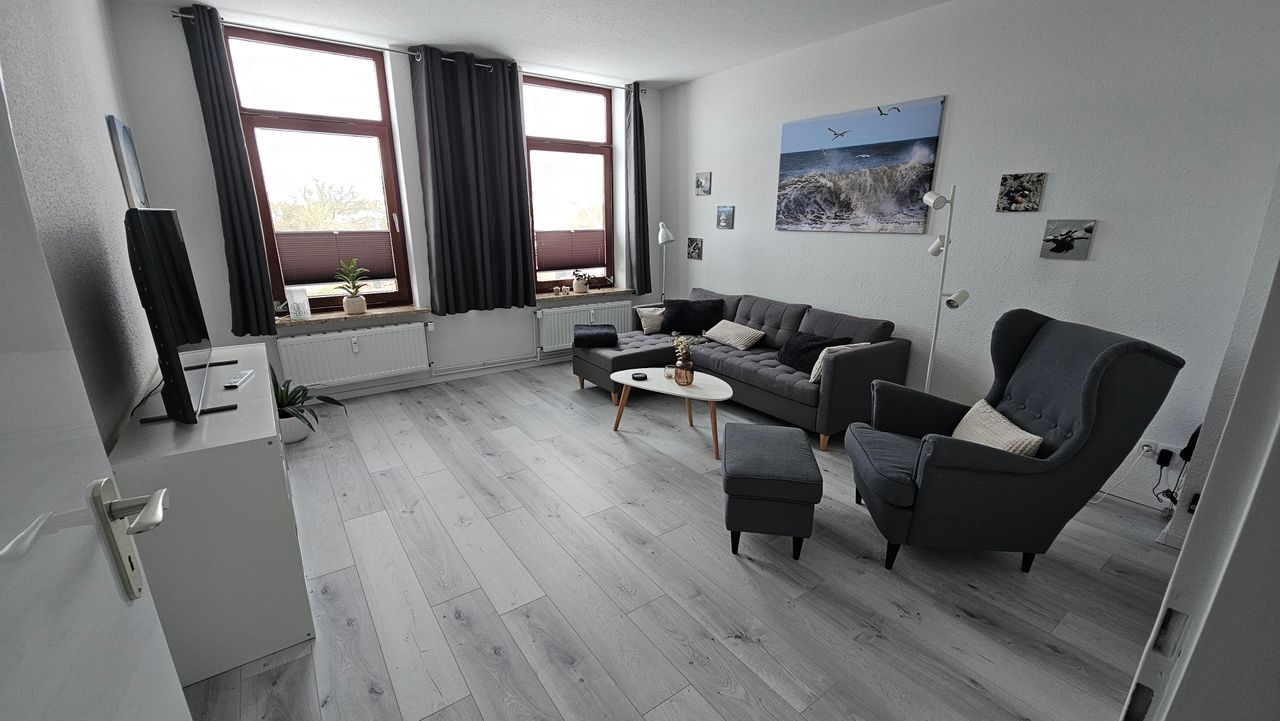 Die Wohnung wurde erst vor gut einem Jahr komplett renoviert und mit neuen Möbeln ausgestattet. Das Schlafzimmer hat 2 Boxspringbetten und einen Kleiderschrank, Nachtschränke und einen Sessel. Im Wohnzimmer lädt eine Couch und ein Sessel mit Fußhocker zum entspannten Fernsehen ein. Die Küche ist komplett ausgestattet: Backofen, Herd, Dunstabzug, Mikrowelle, Kühl-Gefrierkombi. Kaffeemaschine, Wasserkocher, Toaster, Messerblock, Gläser, Becher, Schüsseln, Geschirr, Besteck, Töpfe, Bretter, et...