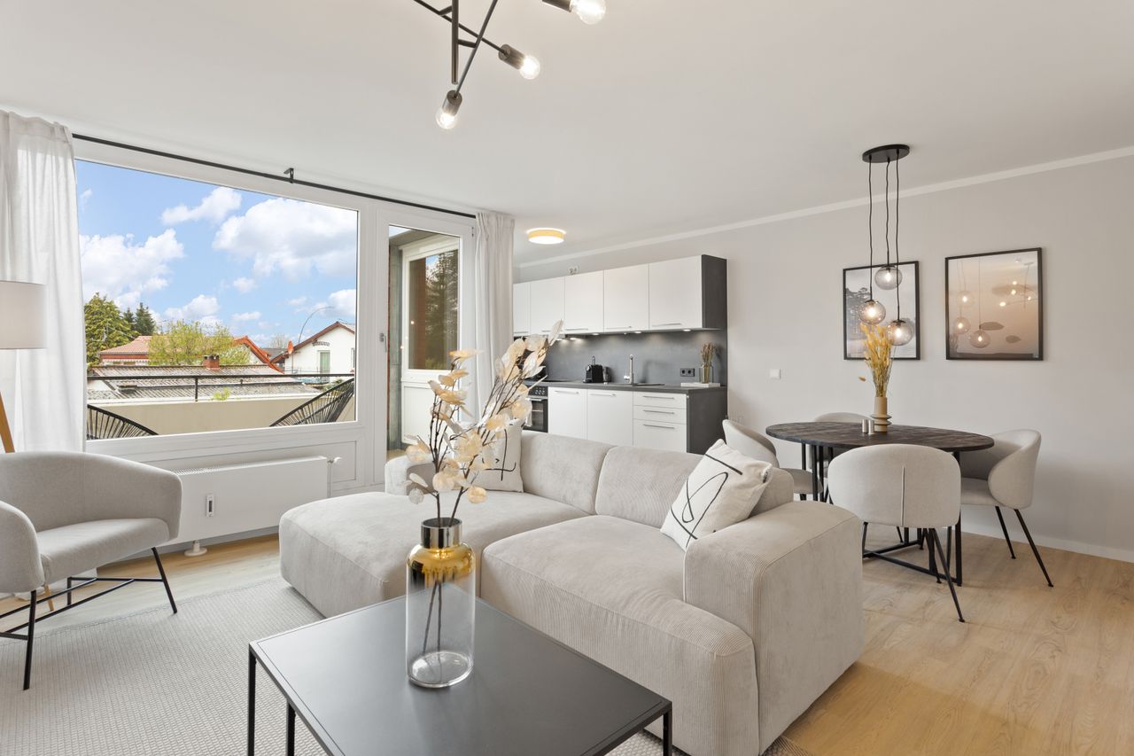 Home-office gerecht. Bei einer Anmietung der Wohnung von mehr als 6 Monaten, verringert sich die Gesamtmiete um 7%, da somit die Umsatzsteuerpflicht entfällt.