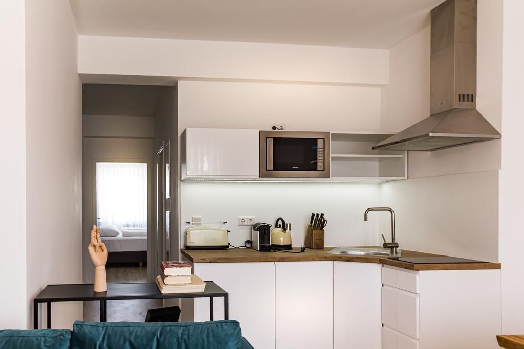 Das 67 m² große Studio-Apartment bietet ein modernes, offenes Raumkonzept mit zeitgemäßer Einrichtung und viel Tageslicht. Der Schlafbereich ist mit vier Einzelbetten ausgestattet und eignet sich ideal für bis zu vier Personen. Die Kitchenette ist voll ausgestattet mit Herdplatte, Kühlschrank, Mikrowelle, Toaster, Espressomaschine und Dunstabzugshaube. Ein Essbereich mit Sitzgelegenheiten steht ebenfalls zur Verfügung. Das Apartment verfügt über ein eigenes Bad mit Dusche, Pflegeprodukten und ...