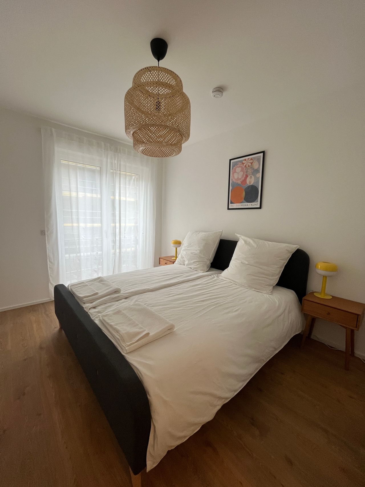 Sit back and relax in this quiet, stylish accommodation with south-facing balcony. Discover this 55m² new-built apartment with high-quality furnishings and light-flooded living room. It's right next to Decksteiner Weiler “The Central Park of Cologne”; chic, modern, green. The apartment is equipped with a new fitted kitchen, underfloor heating and optic internet. It is perfect for leisure and business trips Location: - A quiet but central location in Hürth-Efferen. Shopping facilities, restau...